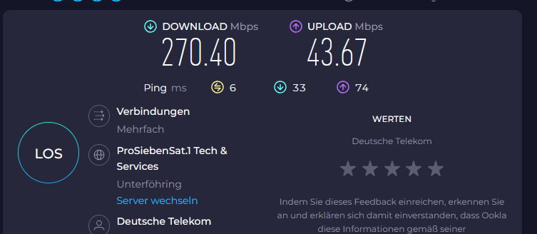 Von 315.000 kbit/s auf ca. 312.000 kbit/s. Das ist ok, aber vorher auf fast 300.000 kbit/s runter mit dem CAT.7 wollte ich jetzt nicht akzeptieren und man sieht ja, dass es nicht normal war.
