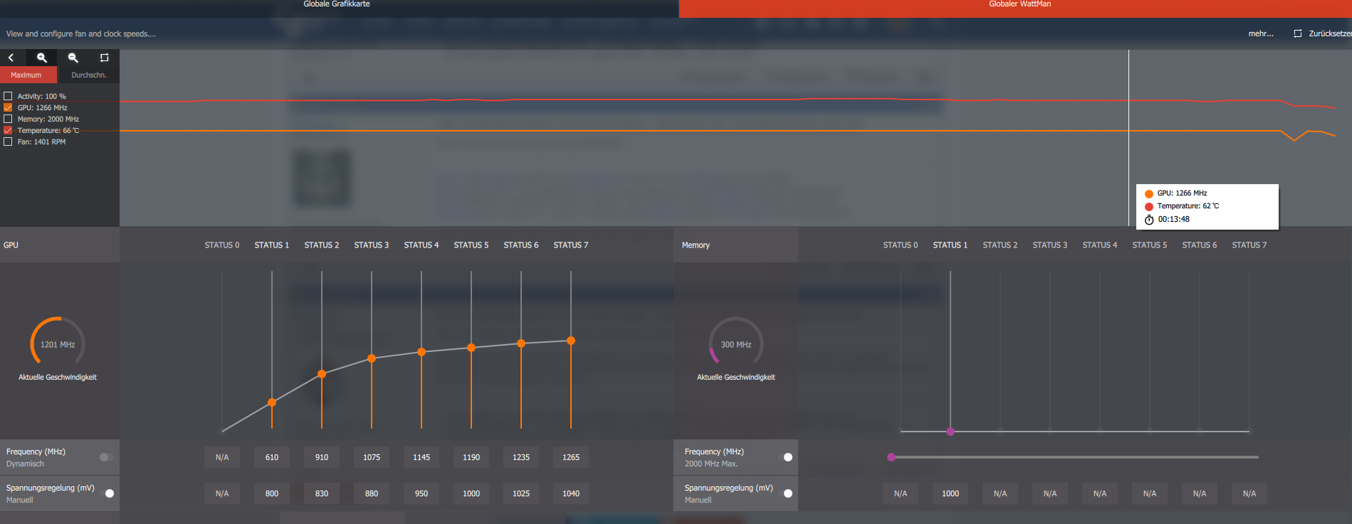 Meine Vermutung wäre nun im WattMan Tool die niedrigsten stabilen mV auszuloten und gleichzeitig das PowerTarget im GPUTweakII um 10-20% zu minimieren.