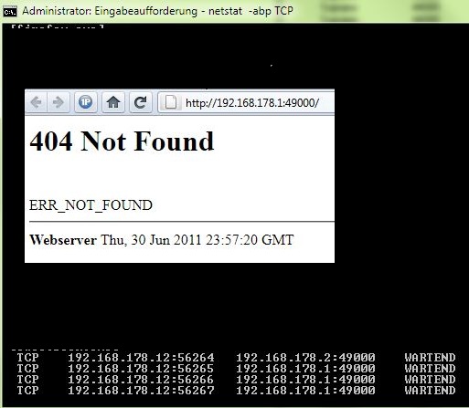 Ich habe diesen durch einen Portscan entdeckt, und mit TCPview auch gefunden;