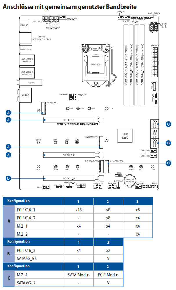 Doch, es müsste gehen, wenn Du die SSD in m2_3 oder _4 steckst. Denn die sind am Chipsatz angebunden, und laufen mit 3.0x4. Dann sollte die GPU am Prozessor mit 16 Lanes laufen. Denn 16 Lanes für die Grafikkarte haben auch die 10. Gen CPUs.Darmax schrieb:Das heißt ich kann eigentlich gar keine NVME SSD nutzen ohne zu limitieren, das schon krass.