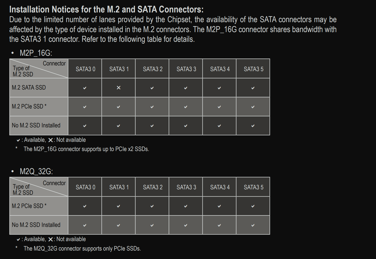 Würde ich so interpretieren. Wie gesagt, Mainboard Manuals sind manchmal etwas schwammig formuliert...Darmax schrieb:Und stimmt das eigentlich: "siehe Bild denn der M2Q_32G "supports only PCIe SSDs" heißt noch weniger als x2"