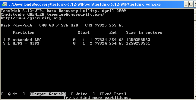 4. TestDisk - Anzeige vor Deeper Search - Sind diese Partitions möglich ?