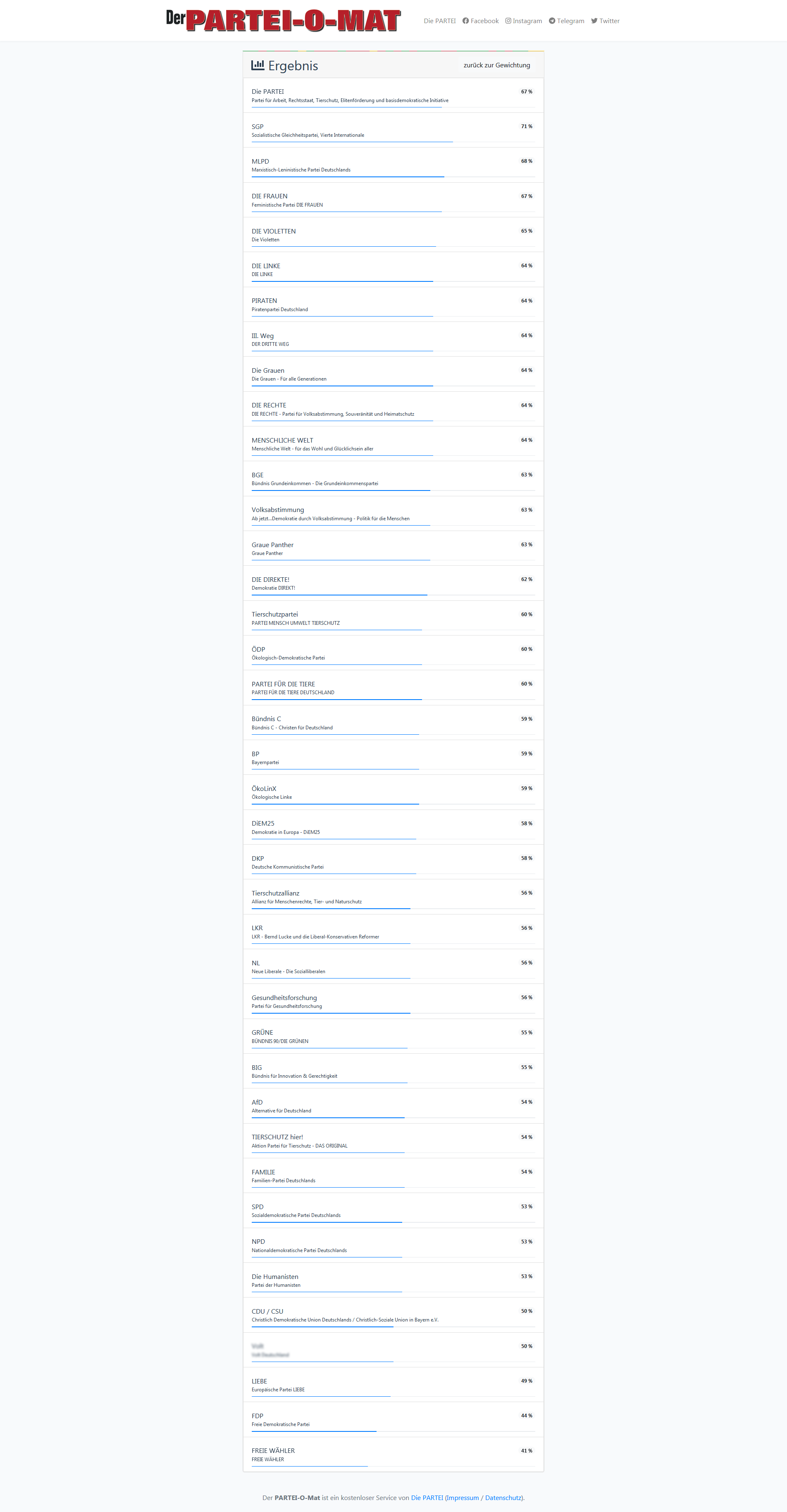 Dieselben Fragen und Mechanismen, nur ist die 8-Parteien-Auswahl am Ende entfallen, und alle werden gelistet: