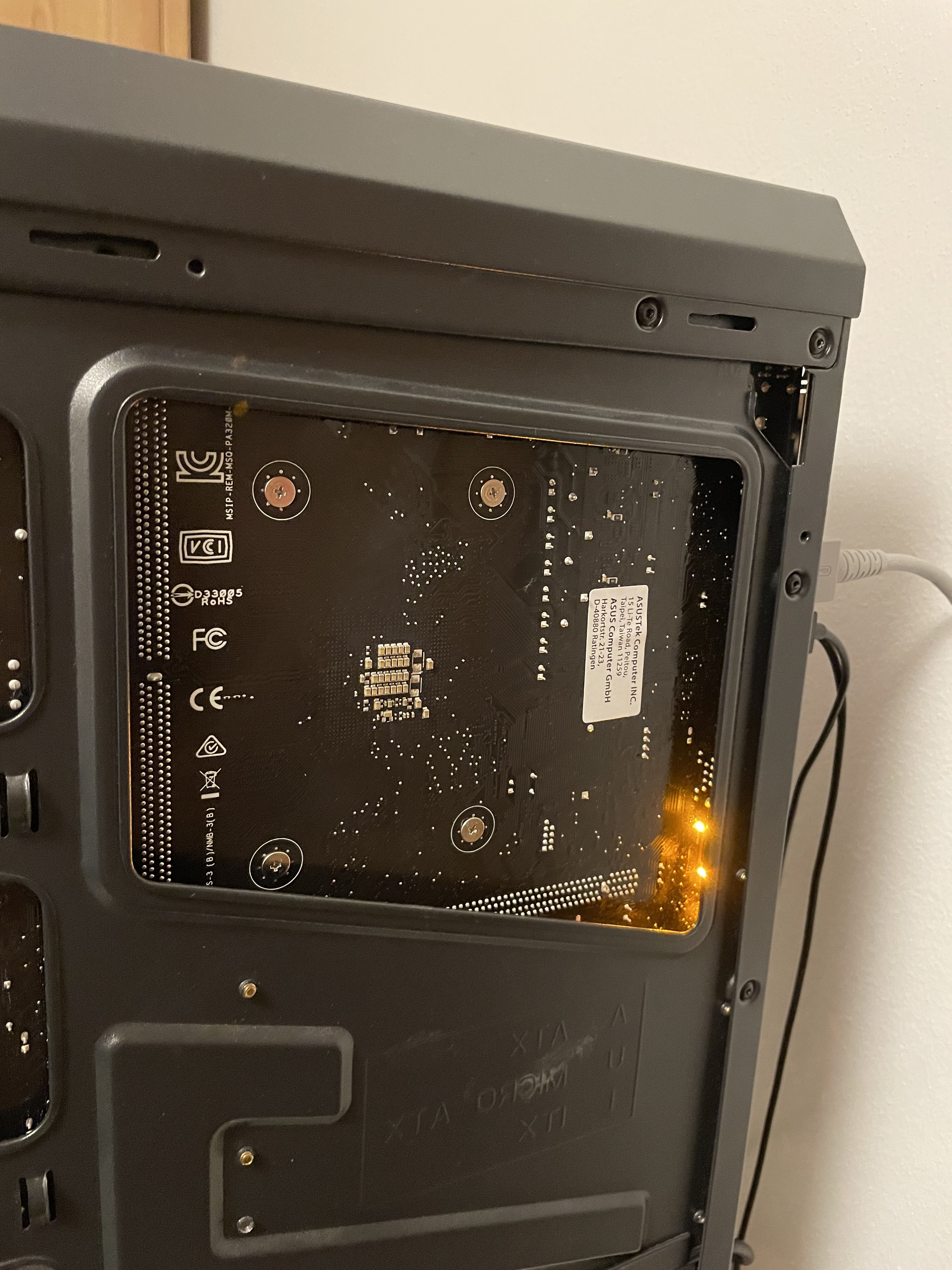 Das Mainboard hat dabei einige tolle orangene LEDS aufleuchten lassen, die dann einfach so vor sich hin leuchten, so lange das Netzkabel angeschlossen ist.