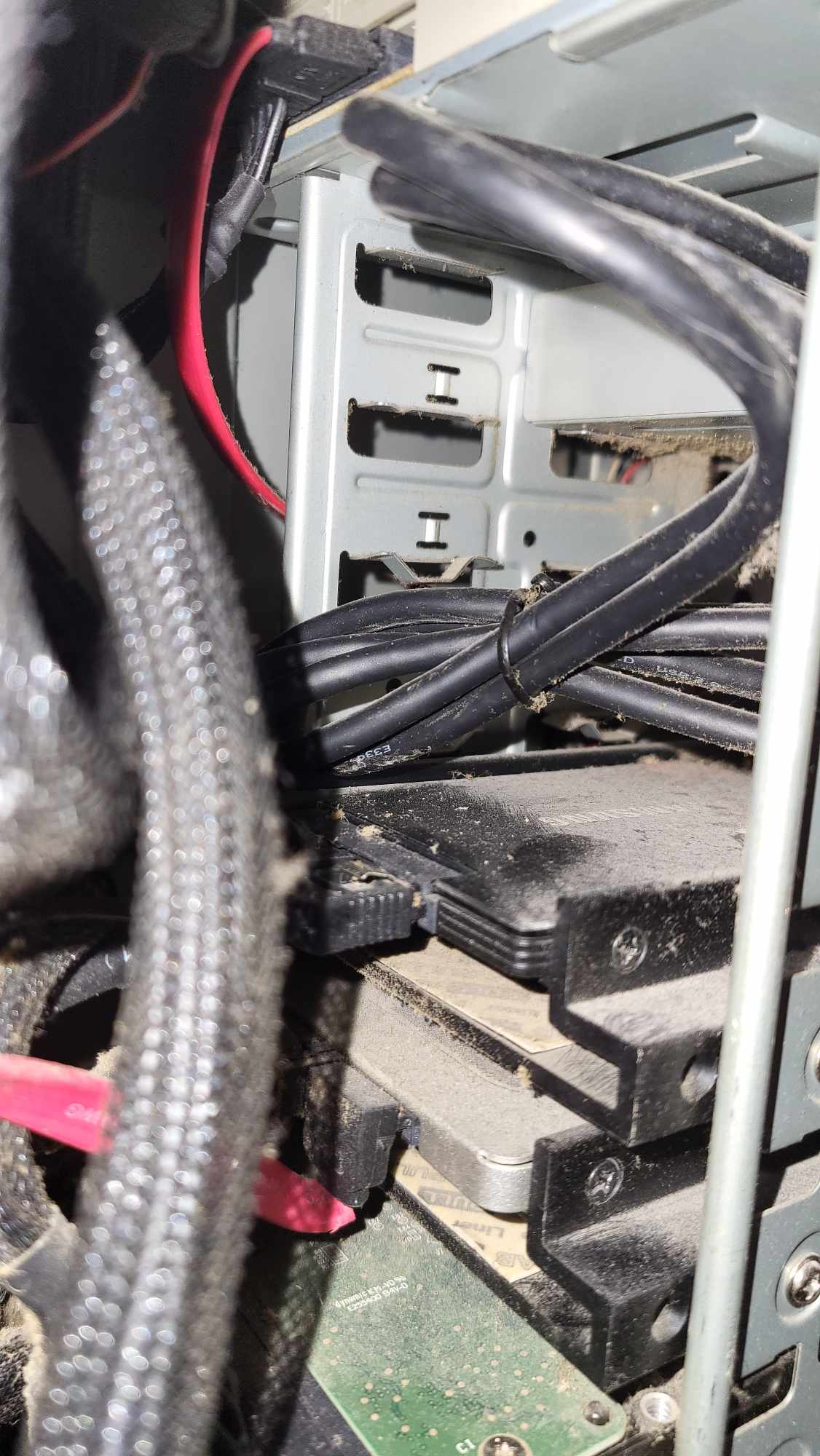 Die Staubbeläge auf den Festplattenplatinen sind auch nicht gerade günstig.