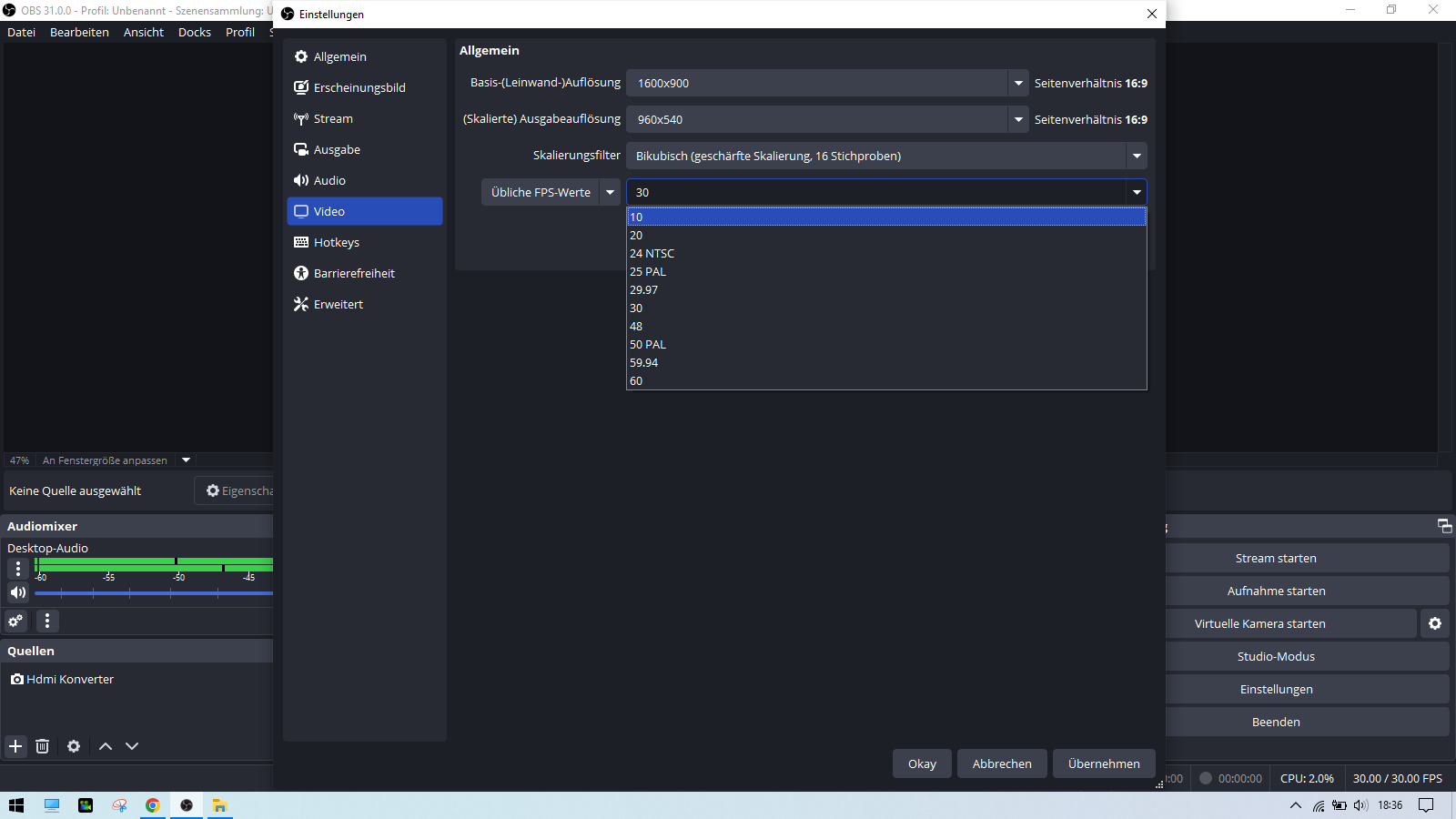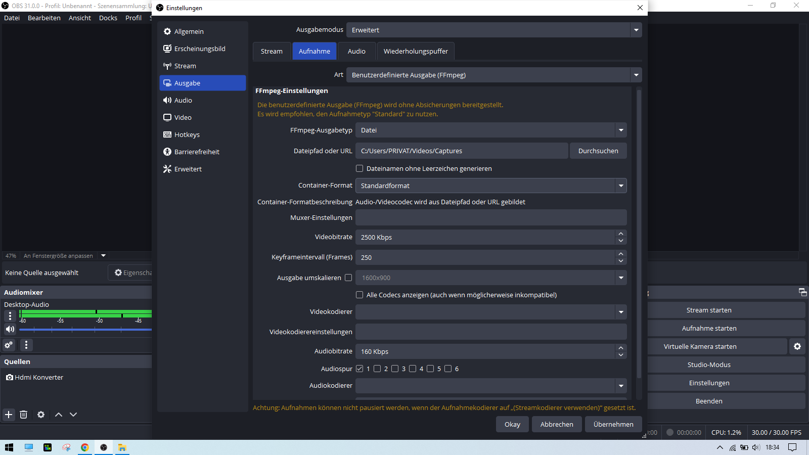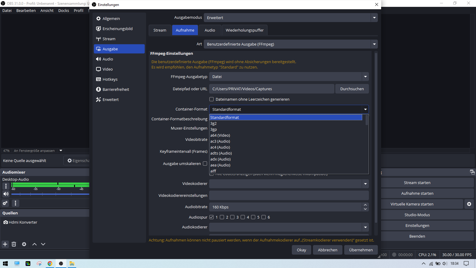 Container-Format? auf Standard oder wäre anderes besser? (ca. 100 Möglichkeiten in OBS)