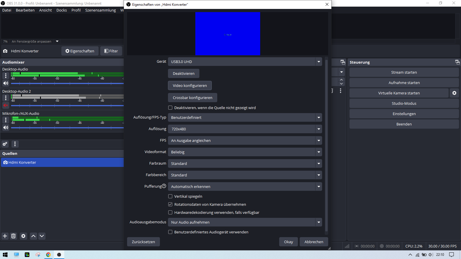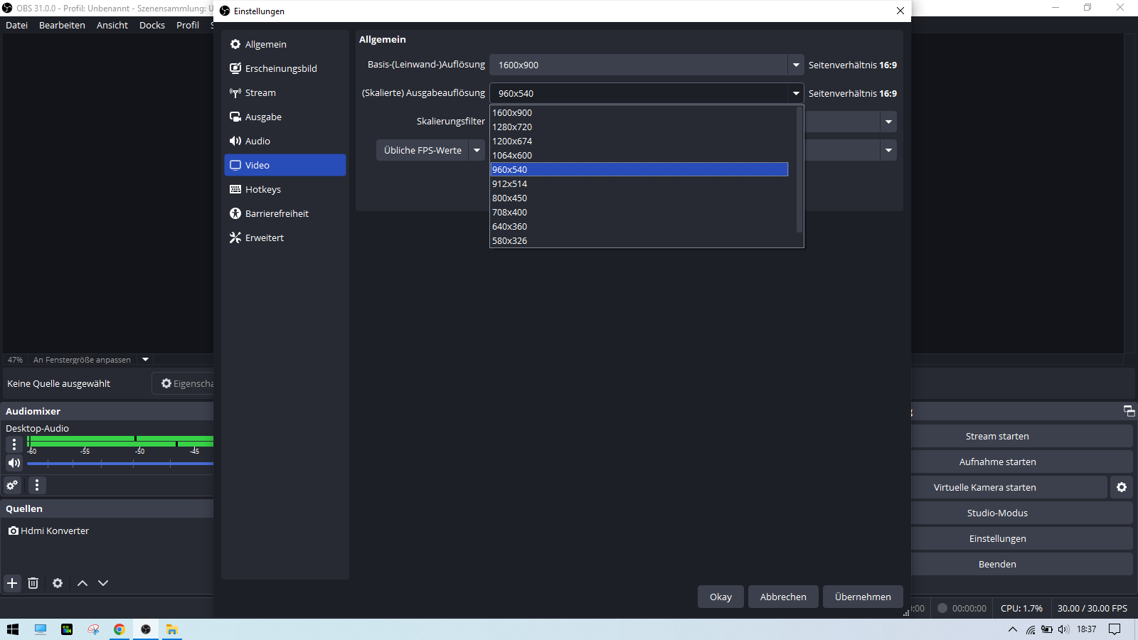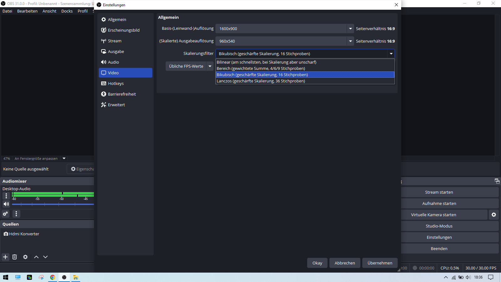 Container-Format? auf Standard oder wäre anderes besser? (ca. 100 Möglichkeiten in OBS)