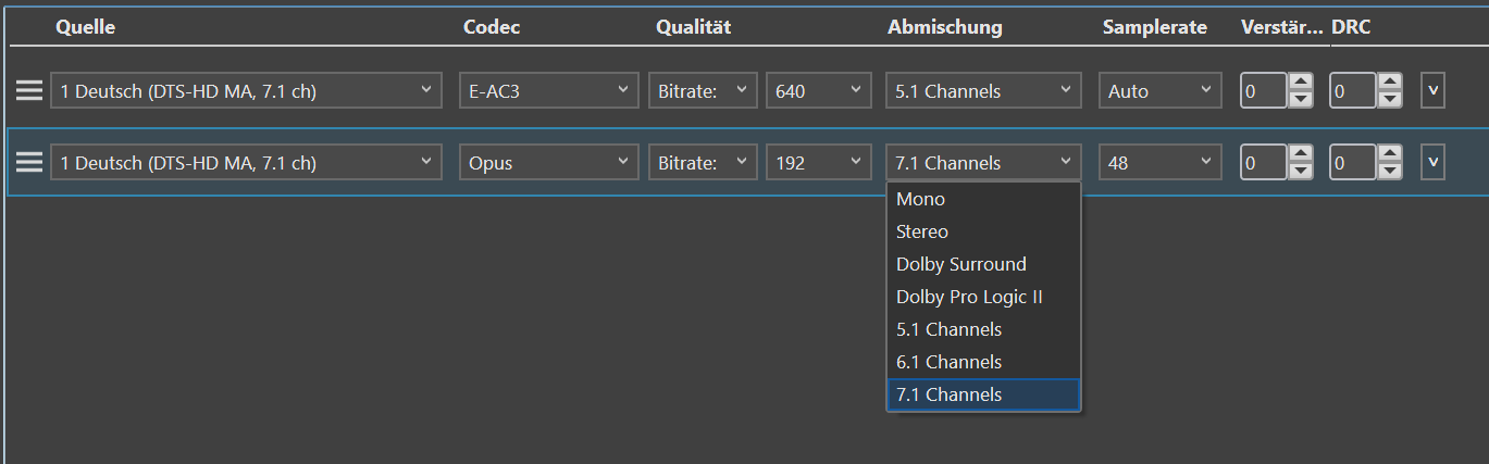 Ich hätte da nochmal eine zweite (mir) extrem wichtige frage. Ich würde doch ganz gerne 7.1 behalten. Handbrake bietet mir nur 5.1 an beim codieren. Hat bestimmt mit den Lizenzen etc. zu tun was vor kurzem hier erwähnt wurde.