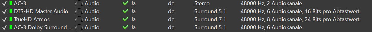 Hm also ich fasse meinen Stand mal zusamen:qiller schrieb:Und auch was die Soundfeatures (Pro Logic, Atmos) angeht, bin ich mir nicht sicher, ob die mit Opus nicht verloren gehen.