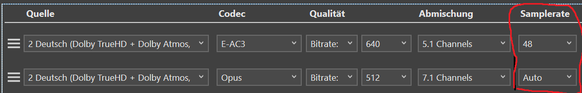 Aber momentan versuche ich das 7.1 in die Komprimierung "zu retten" :-)