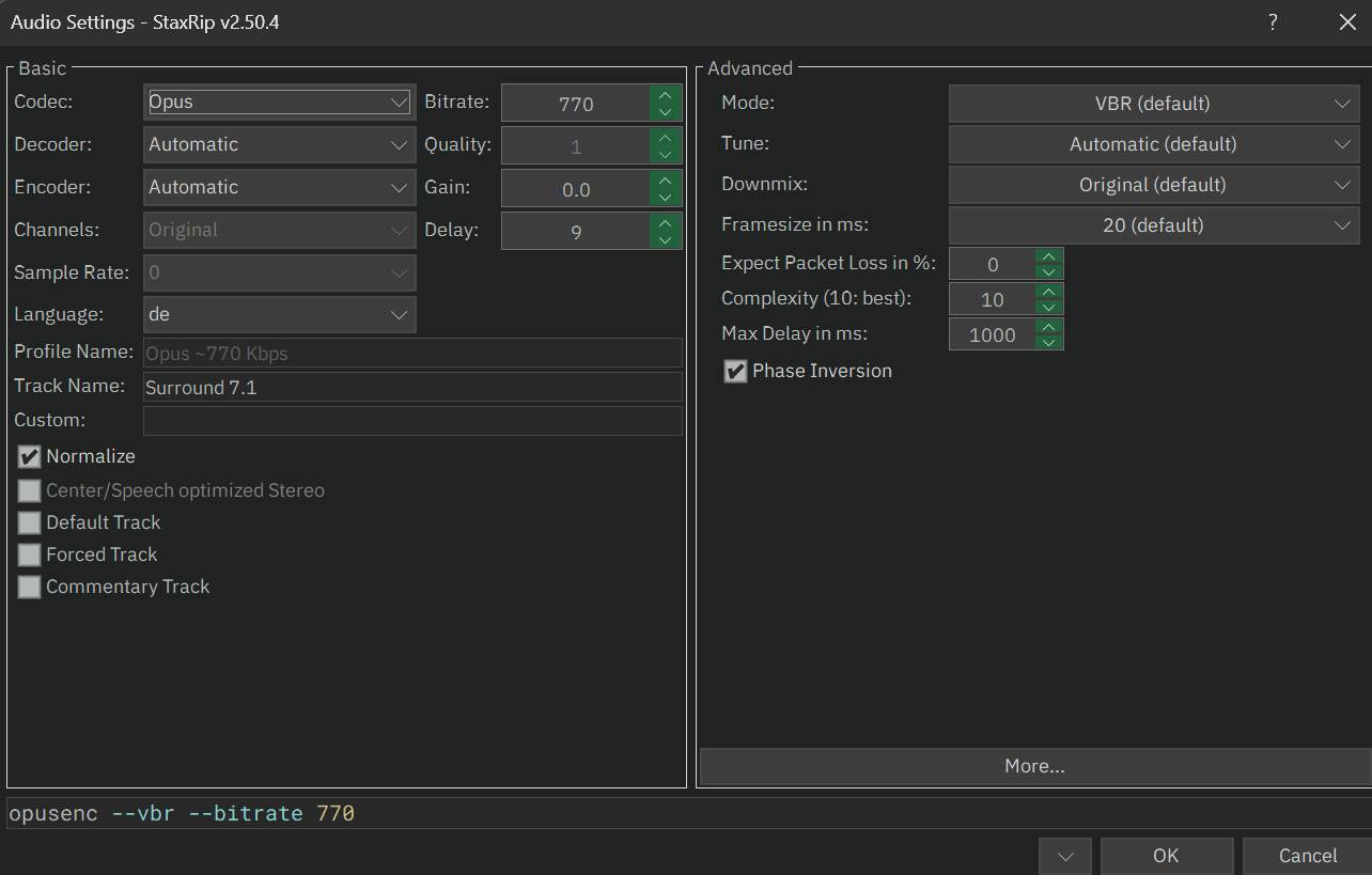 --> was ich mir aber so denke, hätte ich dann nicht gleich auf Opus statt auf EAC-3 setzten sollen? wenn besser und moderner....