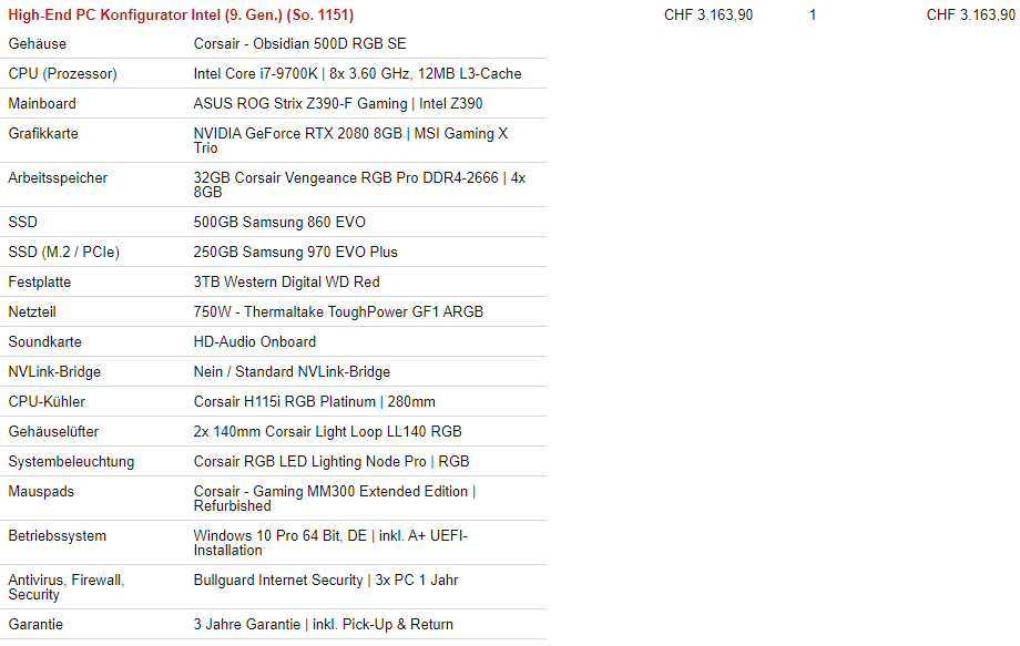• Prozessor (CPU): Intel i7-9700K
