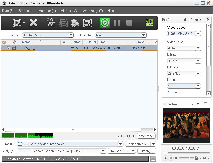 ich möchte gerne meine Musik-DVD Sammlung als avi auf HD-Platte ablegen, also konvertieren. Dazu verwende ich das Prog "Xilisoft DVD Converter 6 Ultimate", habe aber auch schon "Auto GK" versucht.