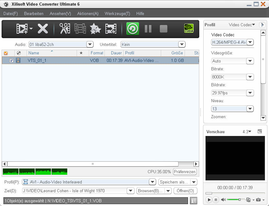 Mein Problem: Als Quelldatei muss ja eine Video-Datei, also VOB her. Davon finde ich aber im VIDEO_TS-Ordner mehrere. Welche muss ich denn laden, damit der ganze Film konvertiert wird. Ich habe alle durchprobiert und bekomme nur Teilstücke. Und die haben dann auch keinen Ton sondern nur Rauschen, obwohl ich unter Audio "01 liba52-2ch" ausgewählt habe (ist ja auch keine andere Tonspur vorhanden).