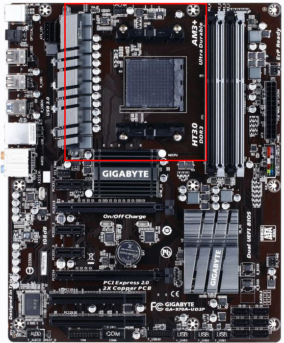Kompabilitätslisten gibt es für den Macho ... aber so alt, dass dort das GA-970A-UD3P noch nicht drin ist: http://www.pc-cooling.de/docs/downloads/macho_mcl_0613.pdf