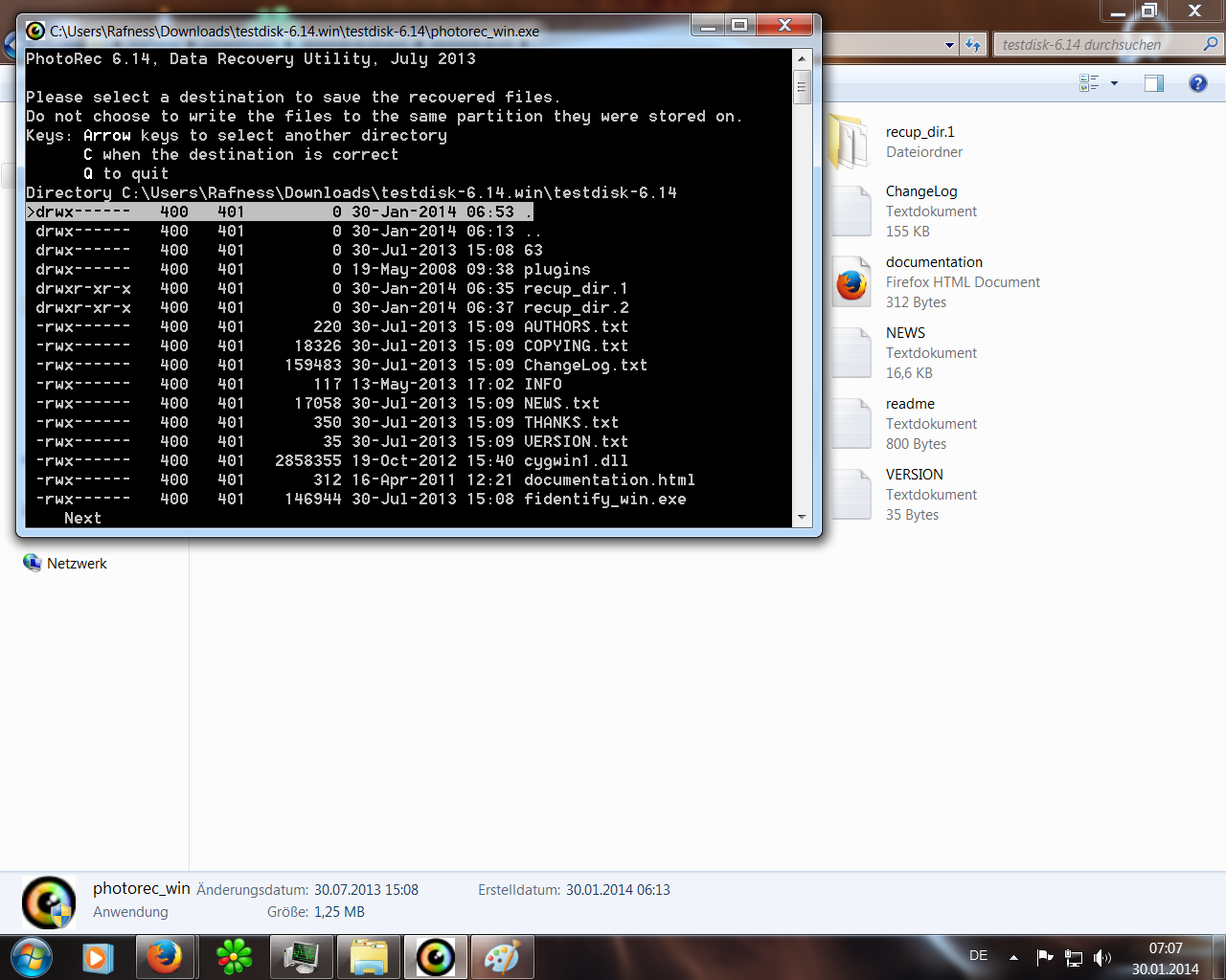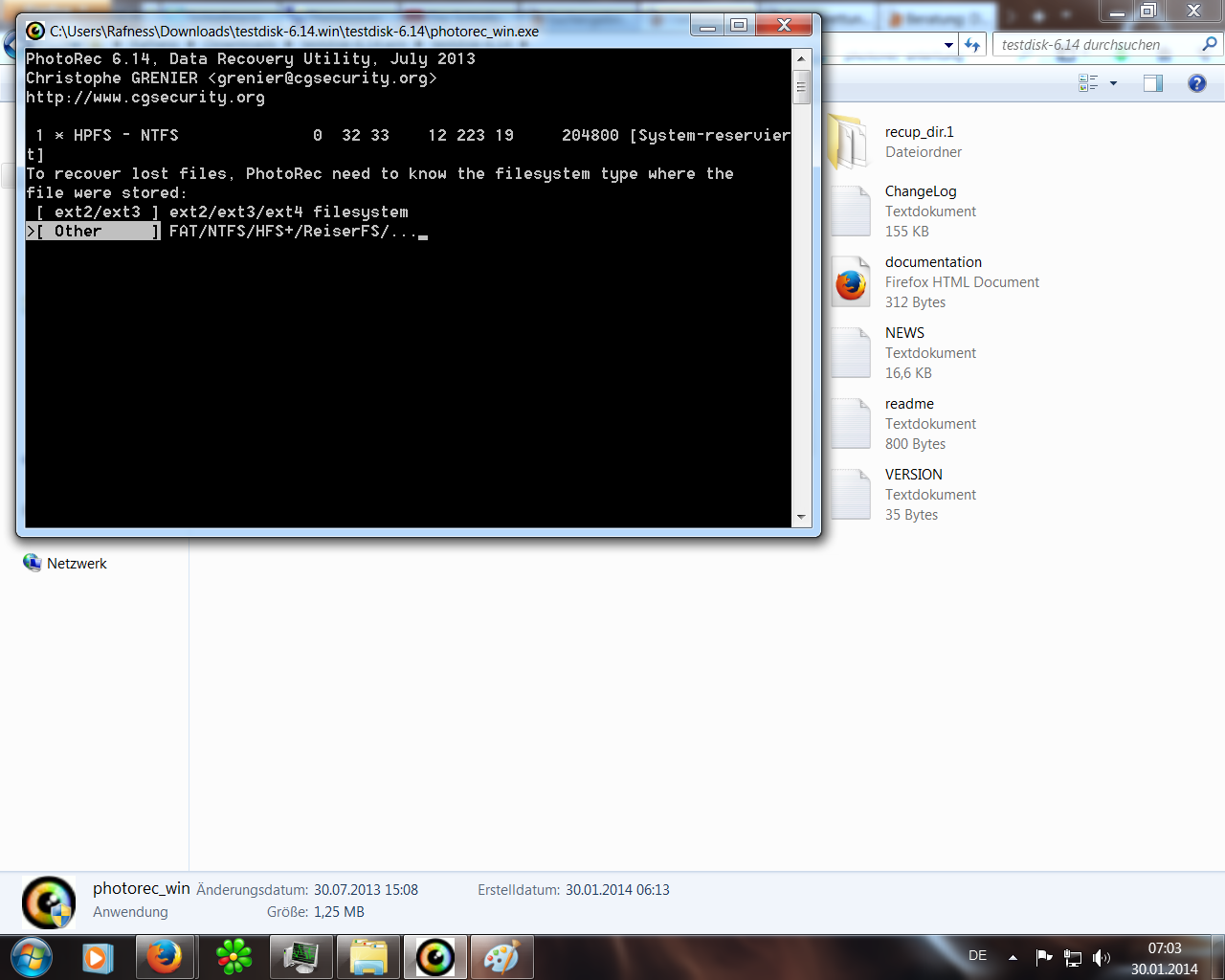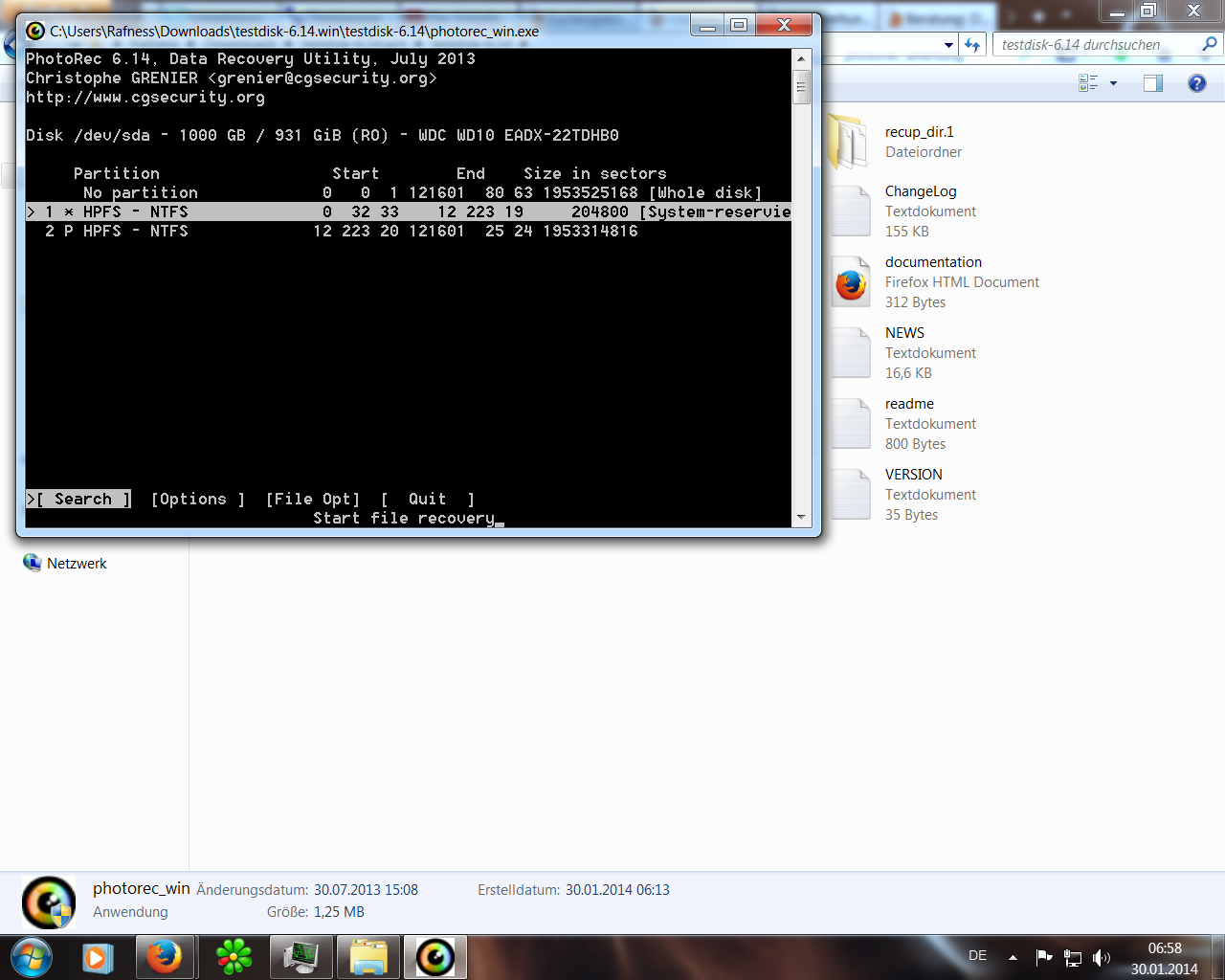Vielleicht stelle ich noch Screenshots von PhotoRec ein, und wir gehen alles Schritt für schritt durch, falls sich jemadn damit auskennt ?