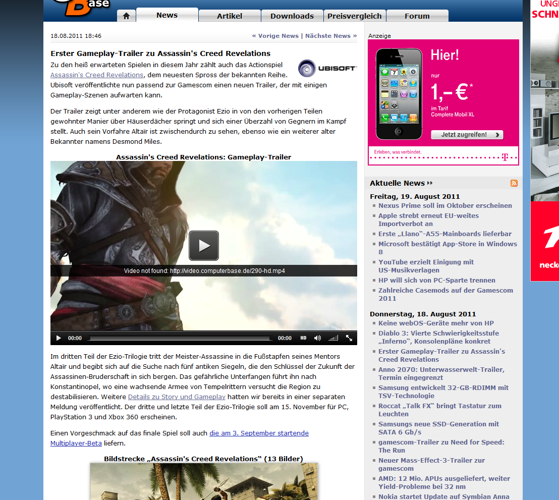"Video not found: http://video.computerbase.de/290-hd.mp4" (Im Falle des Gameplay Trailer von Assassin's Creen Revelations)