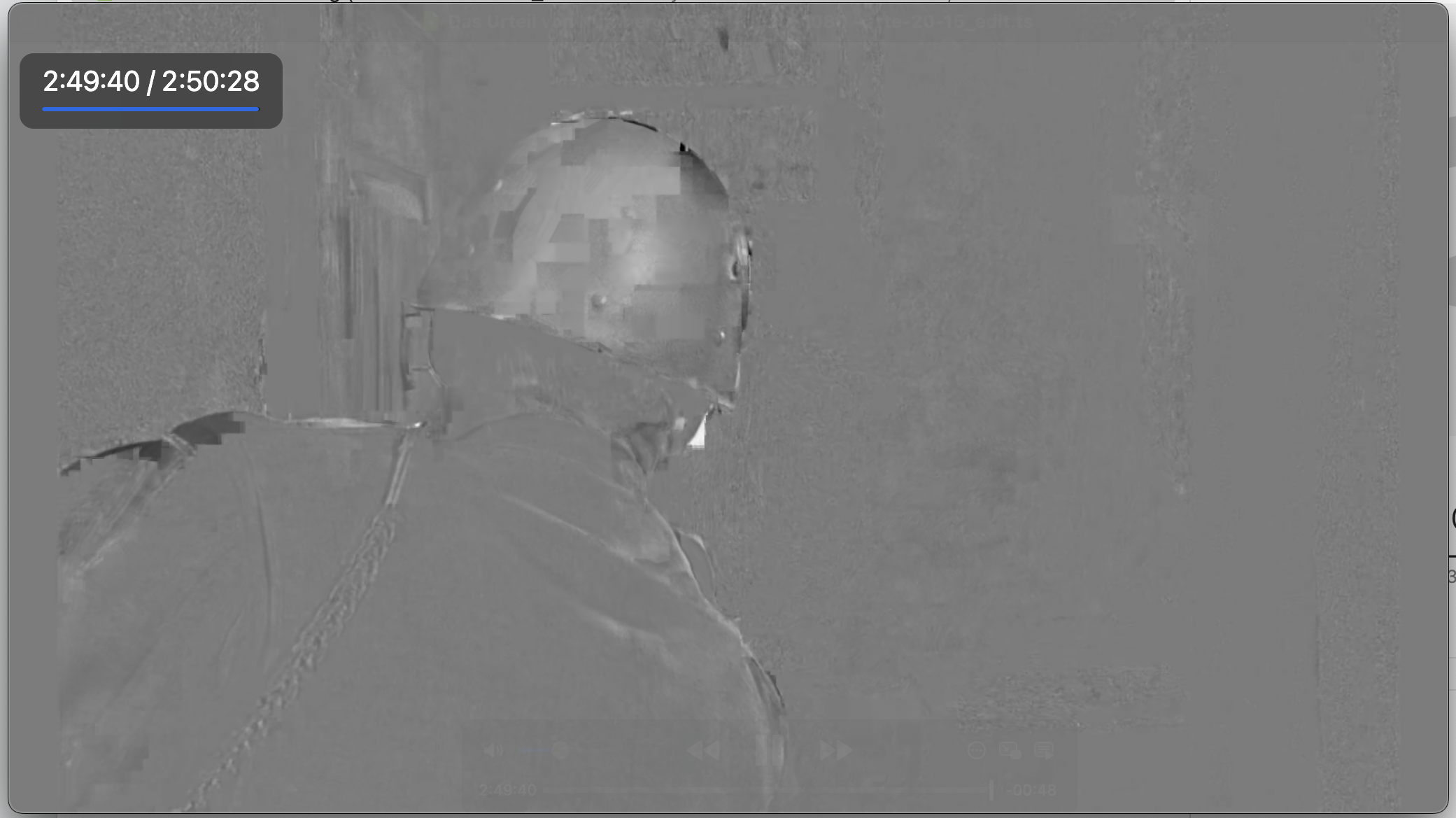 Allerdings treten dabei Probleme auf, die ich eher nicht erwartet habe. Ich nutze ein MacBook Air mit M3, 16 GB RAM und 512 GB SSD. Mit einem alten Windows-Notebook mit Pentium Gold-Prozessor lief der ganze Prozess flüßig. Wenn ich jetzt jedoch mit Avidemux eine der H.265-Aufnahmen öffne und frameweise per Tastendruck "spulen" will, stockt das Ganze massiv und der runde Warten-Indikator erscheint. Beim Spulen in VLC gibt es ebenfalls eine merkliche Verzögerung bis das MacBook scheinbar den richtigen Frame gefunden hat. Unter Windows fühlte sich das Scrollen in der Aufnahme mit der Maus flüssig an, unter MacOS stark verzögert. In IINA gibt es zusätzlich noch recht häßliche Artefakte (siehe Screenshot), die beim Springen zu einem Frame angezeigt werden und es dauert kurz, bis das Bild wieder korrekt angezeigt wird. Dabei ist es egal, ob ich in den Einstellungen unter "Seek Type" "Keyframe", "Exact seek" oder "Auto" auswähle.