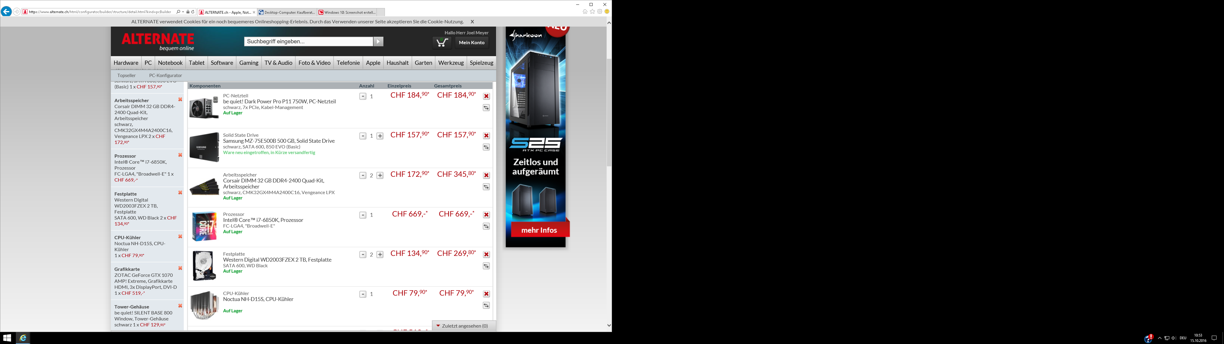 Ich weiß jetzt nicht, wie das bei euch in CH ist, aber in D & Ö ist Alternate eher teuer. Eventuell noch bei anderen Shops bei euch in CH die Preise vergleichen.
