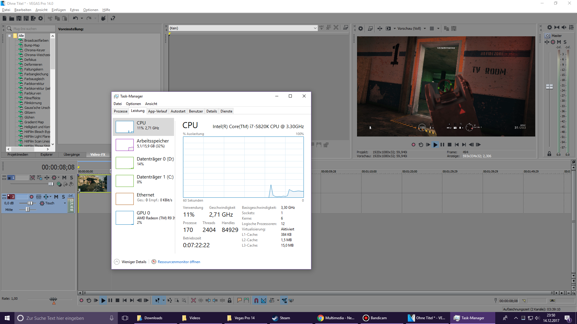 Hier ein Screenshot der Auslastung während die Vorschau abgespielt wird :