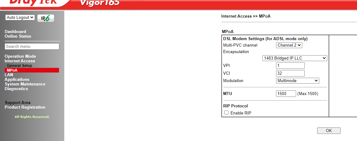 Welchen Operation Mode am Vigor einstellen? (siehe Screenshot Operation Mode.PNG)