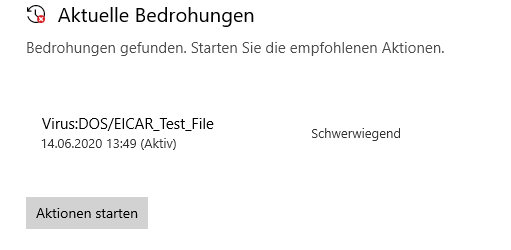 Das Eicar-Spiel ist aber darauf ausgelegt ERKANNT zu werden. Wenn es nicht erkannt wird ,stimmt etwas nicht.