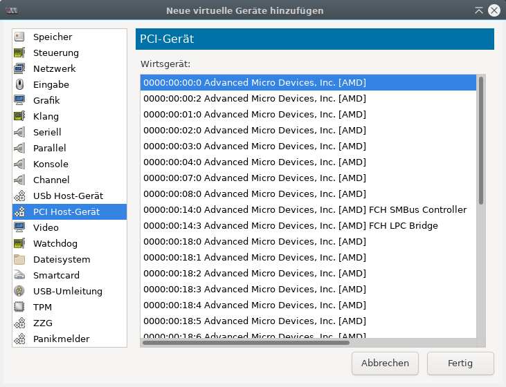 - IOMMU Gruppen (Es kann nicht nur ein Gerät aus einer IOMMU Gruppe zur VM hinzugefügt werden, es müssen alle Geräte einer IOMMU Gruppe hinzugefügt werden. -> Installieren sie den ACSO Patch oder einen vorkompilierten ACSO Kernel. Bitte beachten sie, das der ACSO Patch es ermöglicht, das vom Gast auf den Host zugegriffen werden kann.)