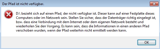 d:\ bezieht sich auf einen Pfad der nicht verfügbar ist