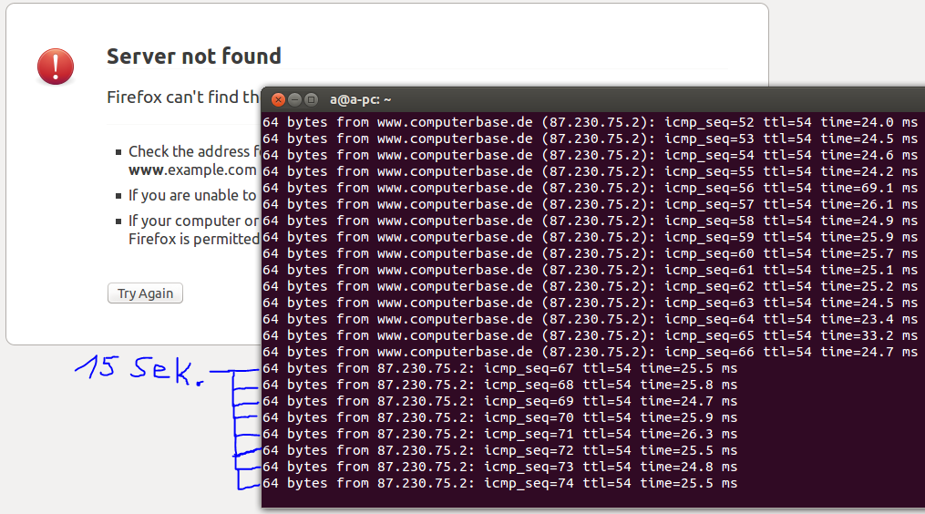 So, aktuell geht es aber um das Surfen in der VM, denn das ist seit kurzem ein richtiger Krampf. Häufig dauert es Ewigkeiten, bis eine Seite überhaupt geladen wird oder eben habe ich mal einen PING gemacht und jeder der unteren Einträge hat etwa 15 Sekunden gebraucht, obwohl da wenige ms stehen...