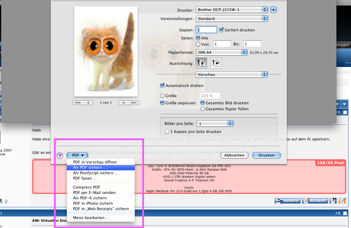 Gibt es ein Programm das wie PDF Creator unter Windows das ganze unter Mac Os tut ,sprich meinem MAC ein Drucker vorgibt zu sein?