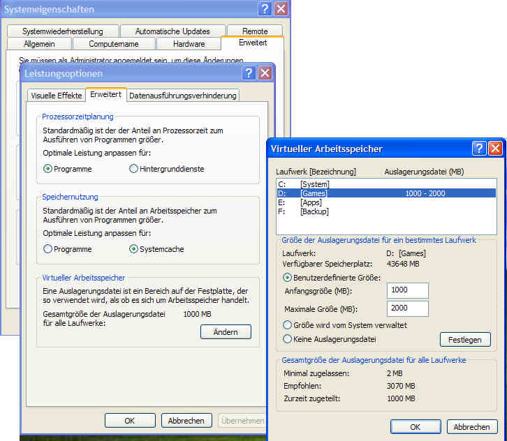maximal 2 GB Auslagerungsdatei ausreichend sind. Anfangsgrösse würde ich 1024 MB vorschlagen.