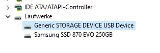Im Arbeitsplatz hatte ich ein ausgegrautes DVD Laufwerk mit den Buchstaben F und im Gerätemanager unter Laufwerke das Gerät " Generic Storage Device USB Device"