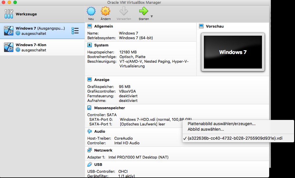 Ich erinnerte mich, dass ich die Snapshots schon einmal wegen Speicherplatzmangel auf einer externen Festplatte ausgelagert hatte. Und so fand ich auch meinen aktuellen Stand von 2019 auf einer externen Platte. Ich kopierte sie in den Snapshot-Ordner auf den Mac zurück. Jedoch kann ich beim Starten von VirtualBox diese Snapshot-Datei nicht auswählen, da sie dort nicht erscheint. Ich habe dort nur Snapshots von 2018 zur Auswahl - jedoch nicht meine aktuelle von 2019.