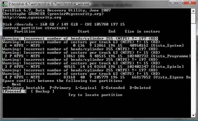 Die Frage jetzt...wie bekomme ich das wieder hin? Ich könnte ja unter XP die Daten auf eine Andere kopieren und ein Format versuchen aber ich befürchte das wird auch nichts helfen...zudem möchte ich das nicht unbedingt versuchen