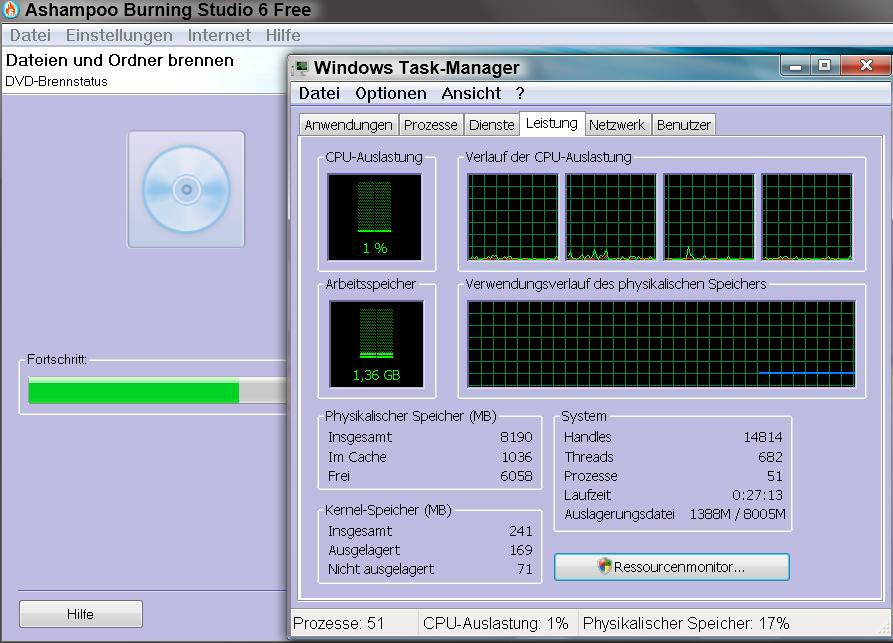 Vista 32/64 Bit, CDBurnerXP lastet die CPU Kerne falsch aus