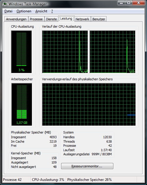 Im Bios und in der Systemsteuerung steht zwar das die 4 Gigabyte Ram erkannt wurden, doch öffne ich den Task-Manager steht unter Leistung im Reiter Physikalischer Speicher (MB) folgendes: