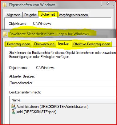 deshalb: gibt es noch einen anderen windows administrator, mitdem ich mir die rechte geben kann?