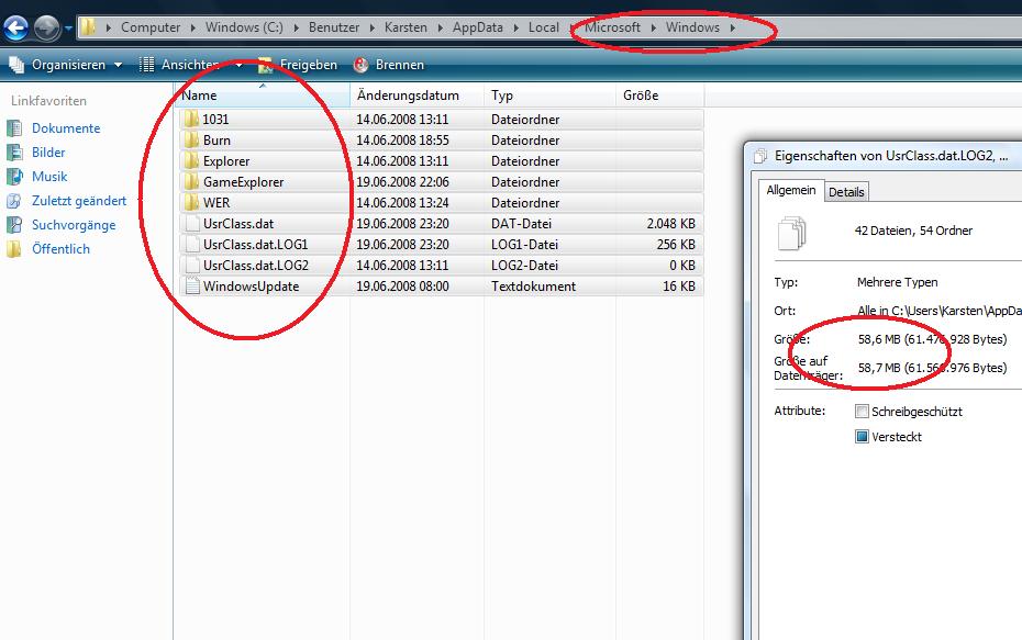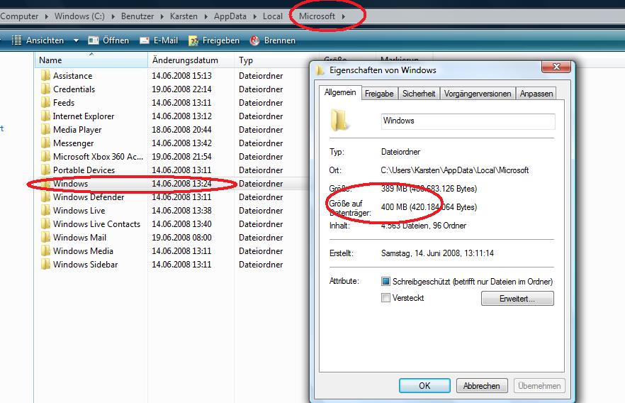 ähnliches sehe ich auch im Benutzer ordner angezeigt werden 1,7 GB !!!!! wenn ich reingehe und alles anwähle sins nurnoch 70 mb