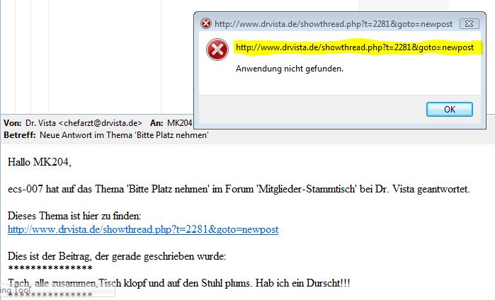 in der Mail nicht mehr öffnen kann,beim anklicken erscheint