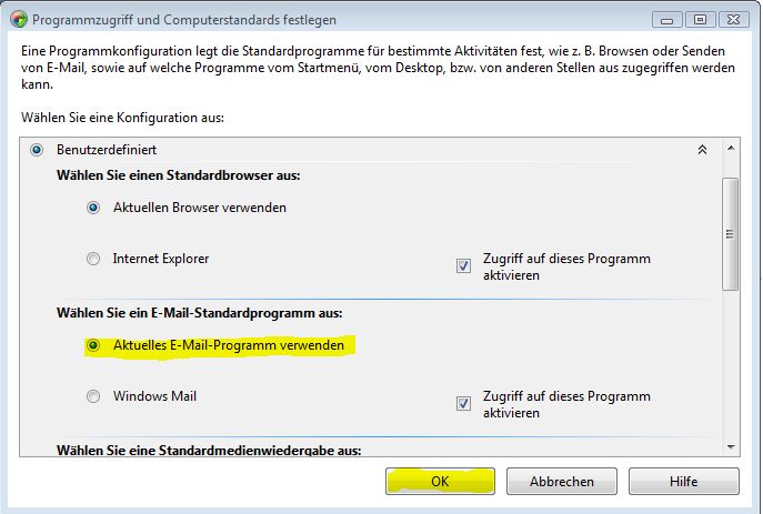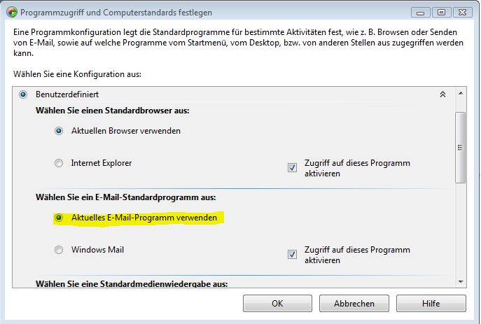 Start > Systemsteuerung > Standardprogramme(Klick) > Programmzugriff und Computerstandards festlegen (Klick) >