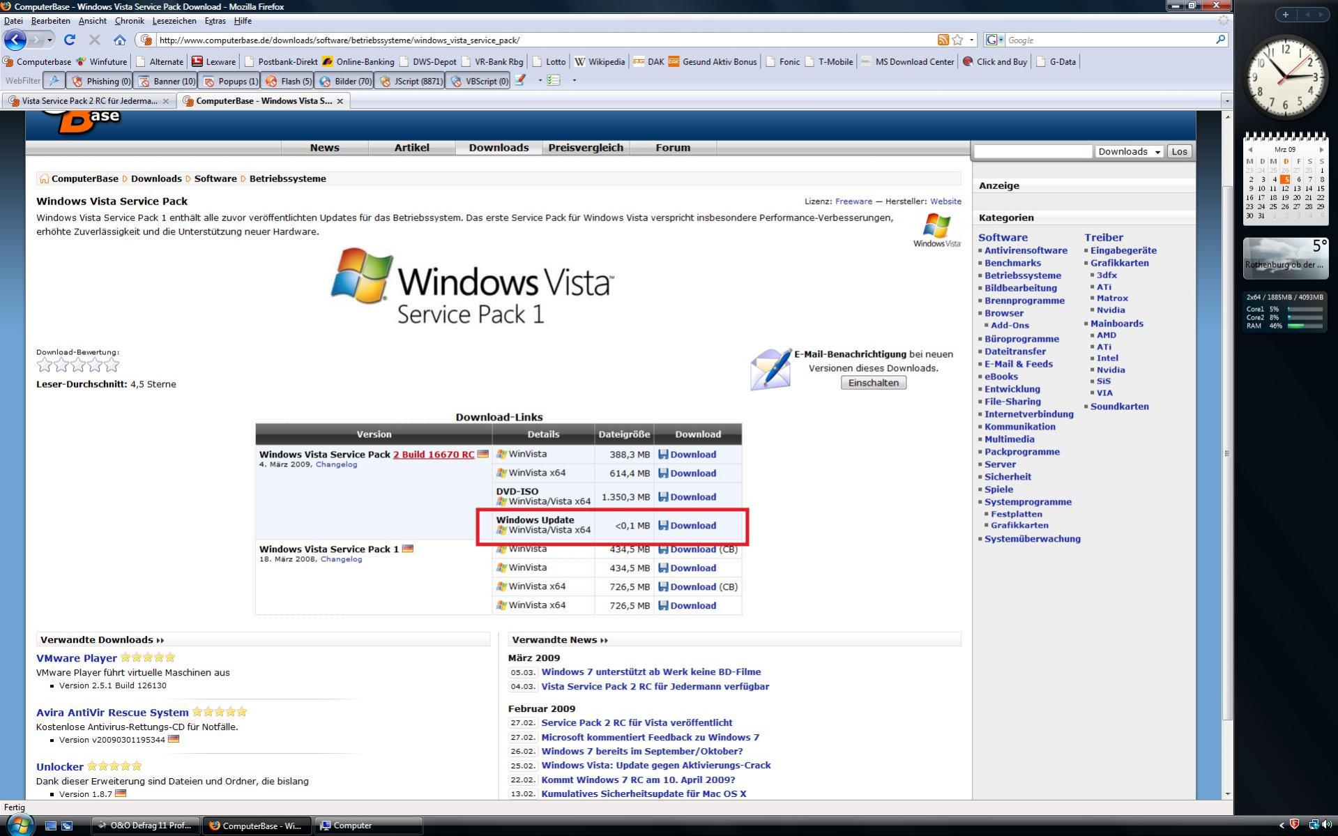 hast du dir selbst eine vista setup cd erstellt dh. zb sp1 integriert etc?