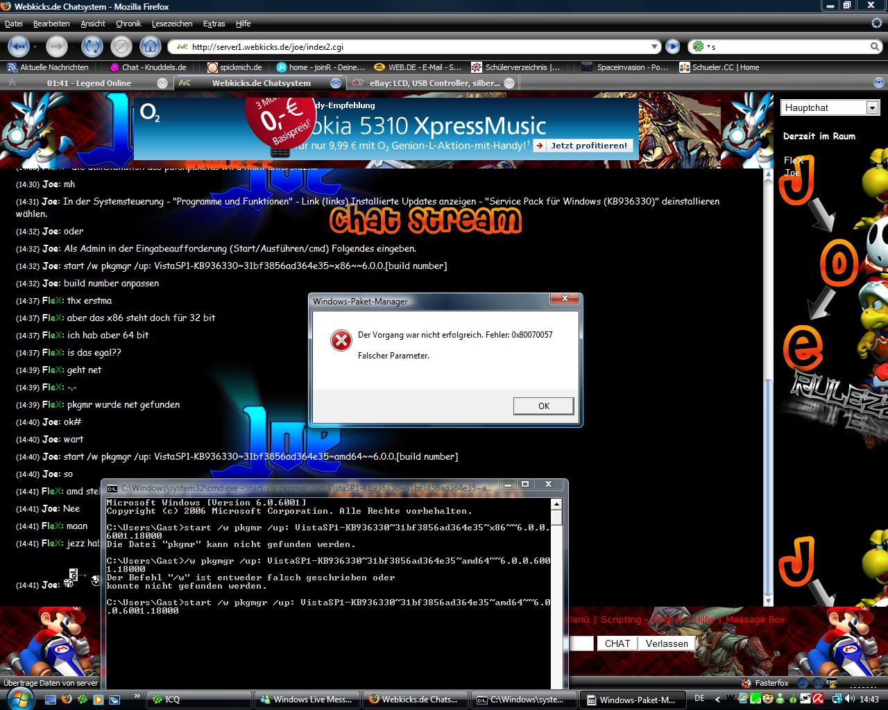 Habe das schon probiert mit CMD "start /w pkgmgr... und was weiß ich was da alles hinterstand" habe das mehrmals probiert vertippt ahbe ich mich glaueb ich nicht.