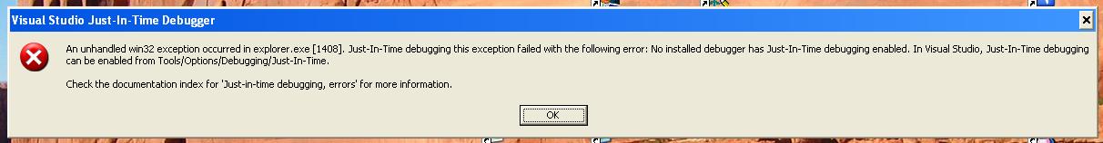 Der Visual Studio Just-In-Time Debugger meldet, kein Just- In- Time Debugger sei aktiviert (siehe auch Screenshot).