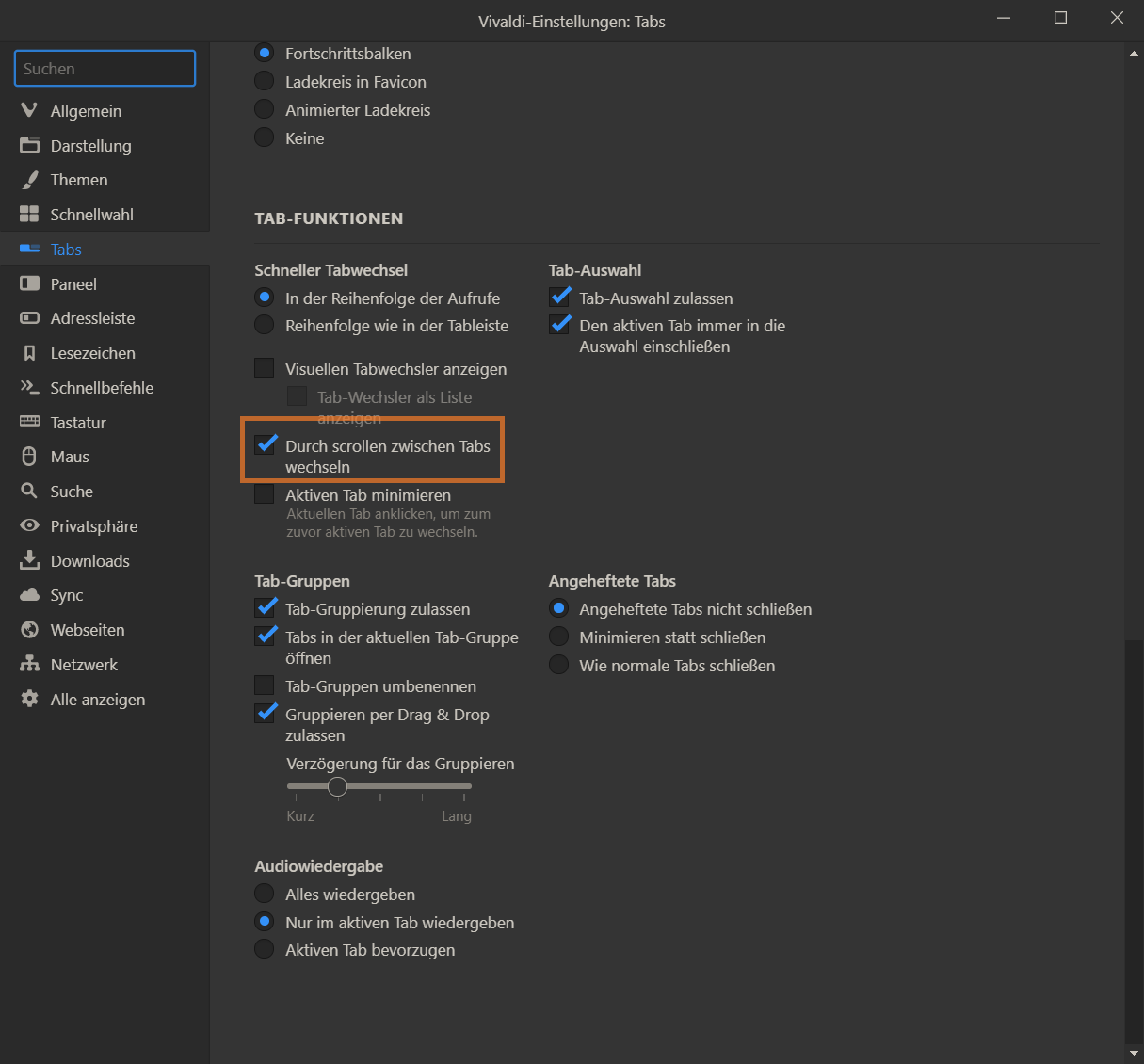 Durch die Tabs scrollen geht von Haus aus.