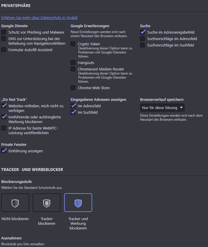 Nun habe ich die Blockliste deaktiviert und es flutscht mit Vivaldi.