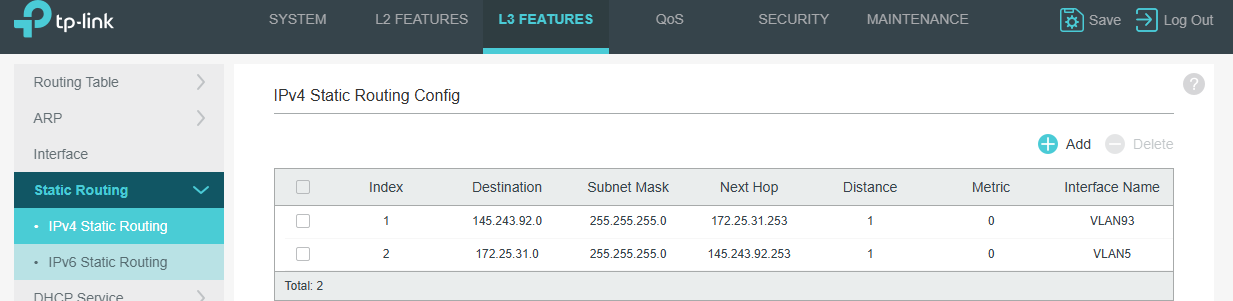 Im Handbuch, Seite 396, ist erklärt wie man statisches Routing einrichtetBeTZe schrieb:TP Link T1600G-52TS