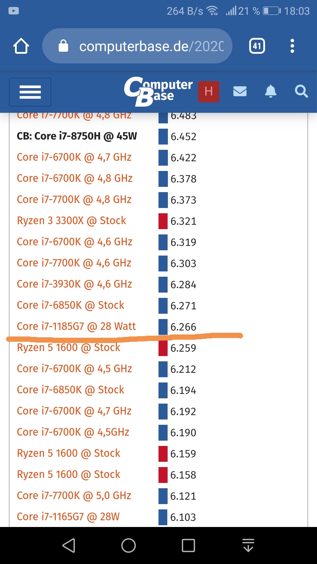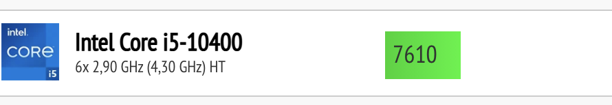 das sind auch wieder ganz klasse benchmarks auf der seite. kannst du mir mal sagen warum ein i7 10700k mit 8x 3,8ghz genauso langsam sein soll wie ein i7 1068ng7 mit 4 kernen bei 2,3 ghz?Autokiller677 schrieb: