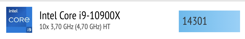 Da sind wir dann plötzlich in der Liga eines 10 Core i9 10900X: