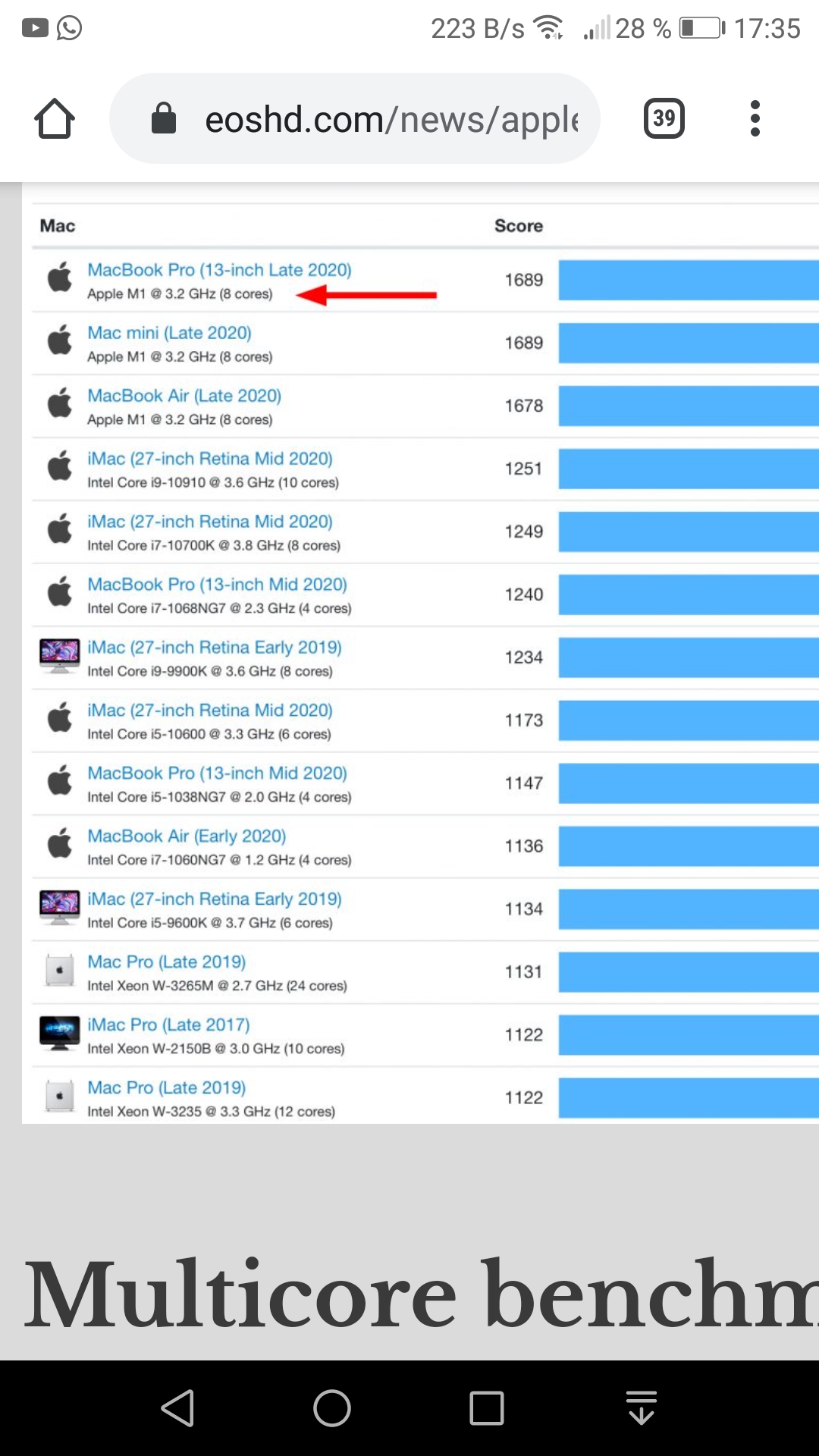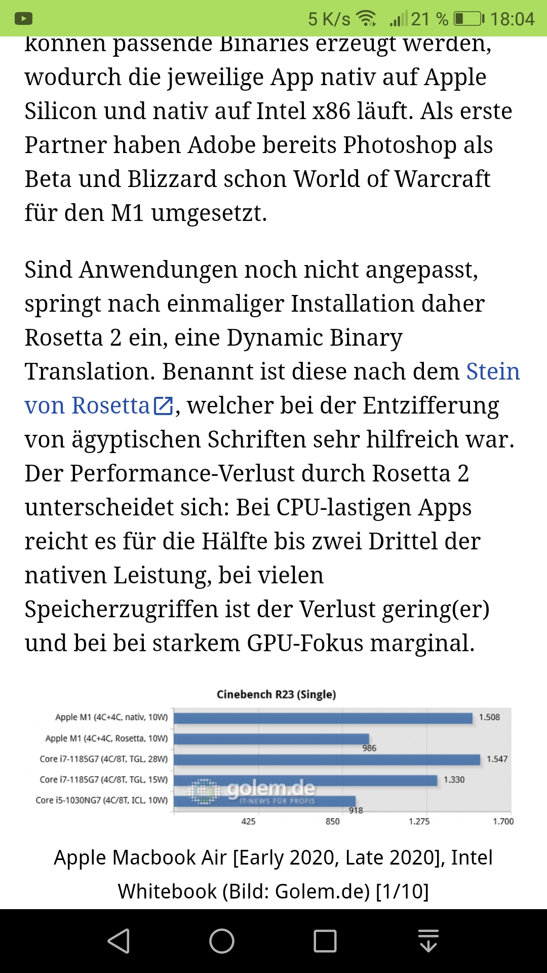 Und natürlich ist deswegen i7 vs. M1 Äpfel mit Avocados verglichen. Was man aber direkt vergleichen kann sind Intel- oder M1 basierte Macs, und da sieht es für die Intel-basierten Macs halt bitter aus.