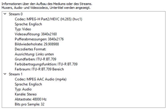 Ich habe ein Sony xz2 compact, dass wunderbare 4k Videos aufnimmt. Dazu einen PC, der hardwaretechnisch auf jeden Fall weit oben dabei ist und auch 4k ready ist. In der Regel kann ich 4k Videos problemlos anschauen. Nicht aber die Videos die ich mit meinem Handy aufnehme. Es entstehen im VLC Player 2 Videos nebeneinander die einen totalen Lilastich haben. (Am Handy sehen diese natürlich ganz normal aus und wenn ich die Videos erstmal bearbeite und dann in zb avi umwandel hab ich das Problem auch nicht, aber ich würde das gerne ohne umwandeln anschauen können). Im Anhang habe ich die Codecinfo aus dem VLC angehängt und ein beispiel Screenshot wie die 2 Videos dann aussehen. In dem Fall wegen Hochformat übereinander und nicht nebeneinander. Vielleicht kann mir ja jemand weiterhelfen?